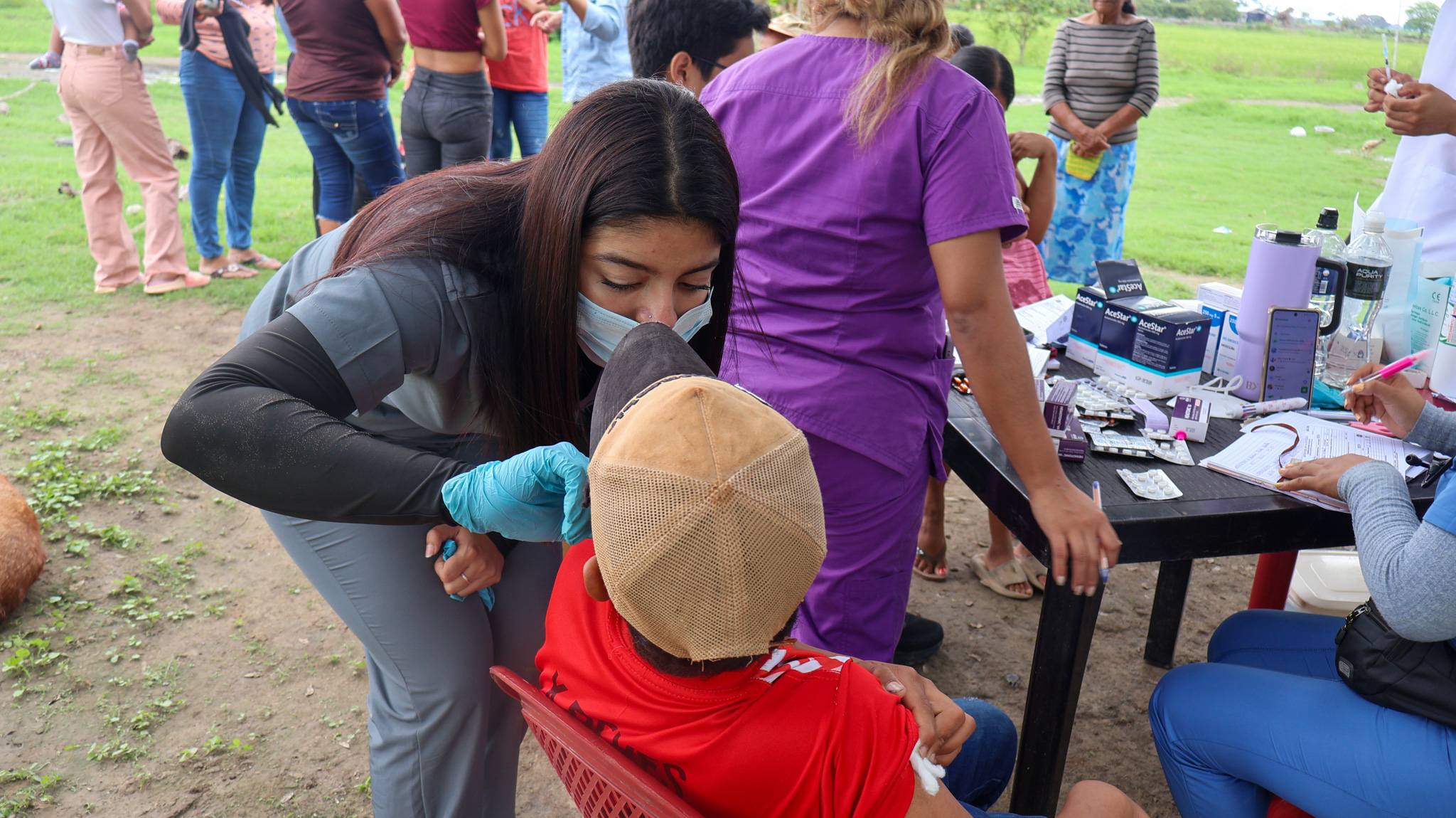 Gracias a la articulación con el Ministerio de Salud Pública, se realizó una brigada de vacunación contra la influenza, además de atención médica y entrega de medicamentos, beneficiando a los habitantes del recinto La Delicia.